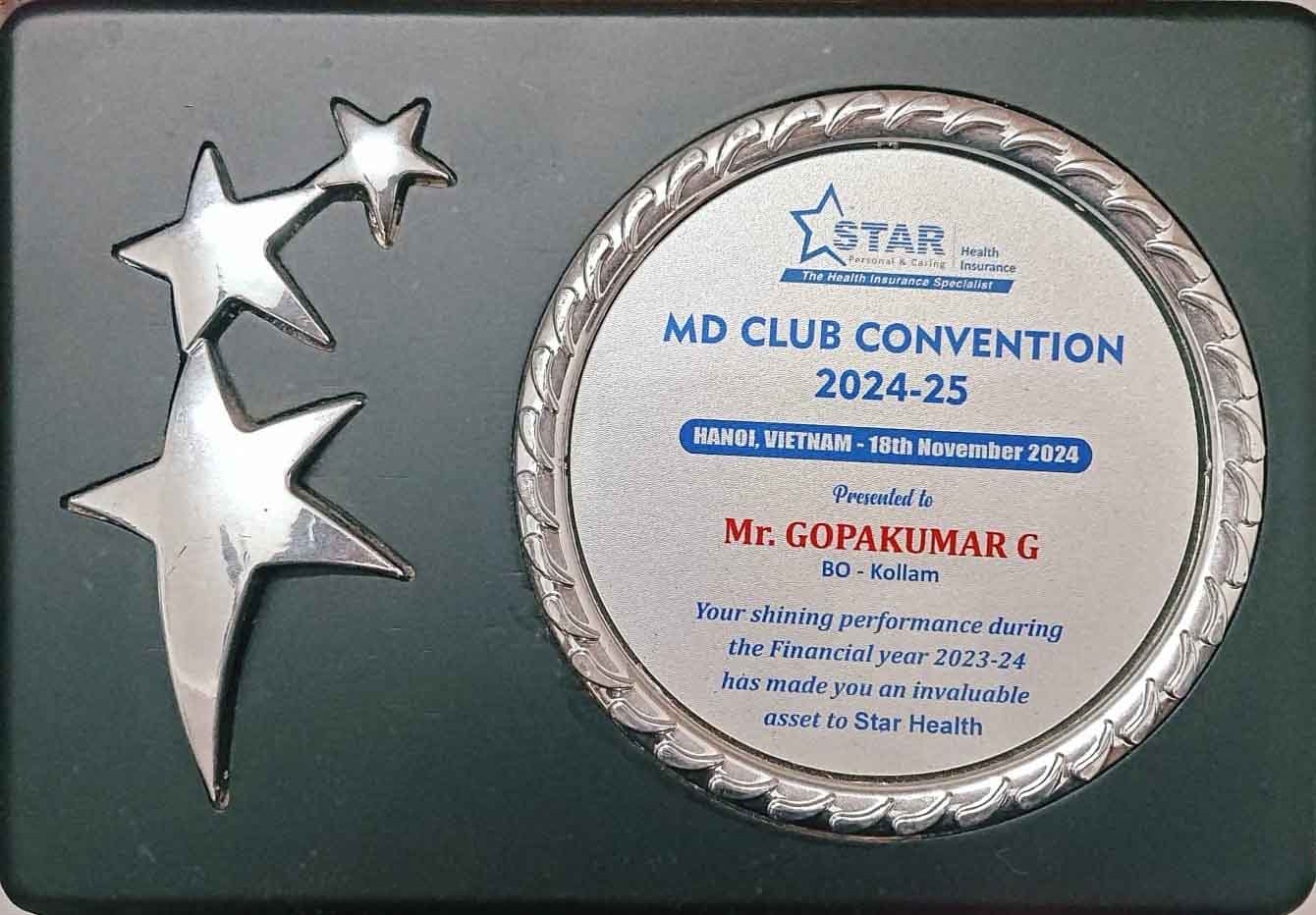 Proudly honored by the Chief Managing Director (CMD) for exceptional leadership, ethical practices, and consistent contribution to the insurance industry.