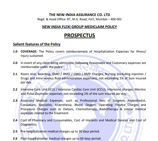 New India Flexi Group Mediclaim Policy (Cashless Facility Available)