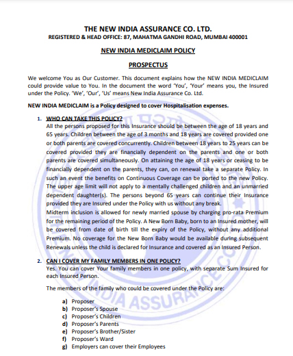 New India Mediclaim Policy