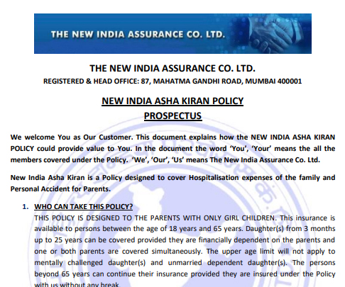 New India Asha Kiran Policy