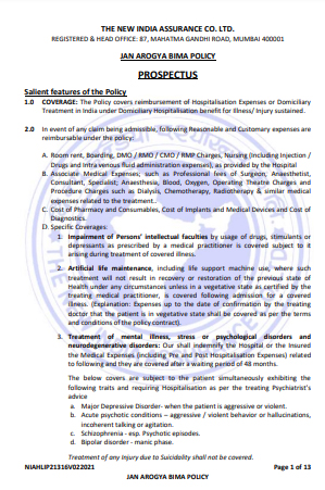 Jan Arogya Bima Policy