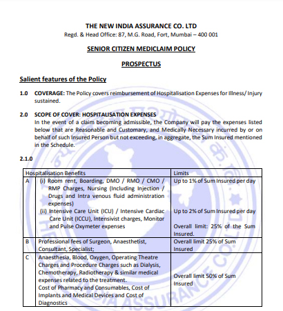 Senior Citizen Mediclaim Policy